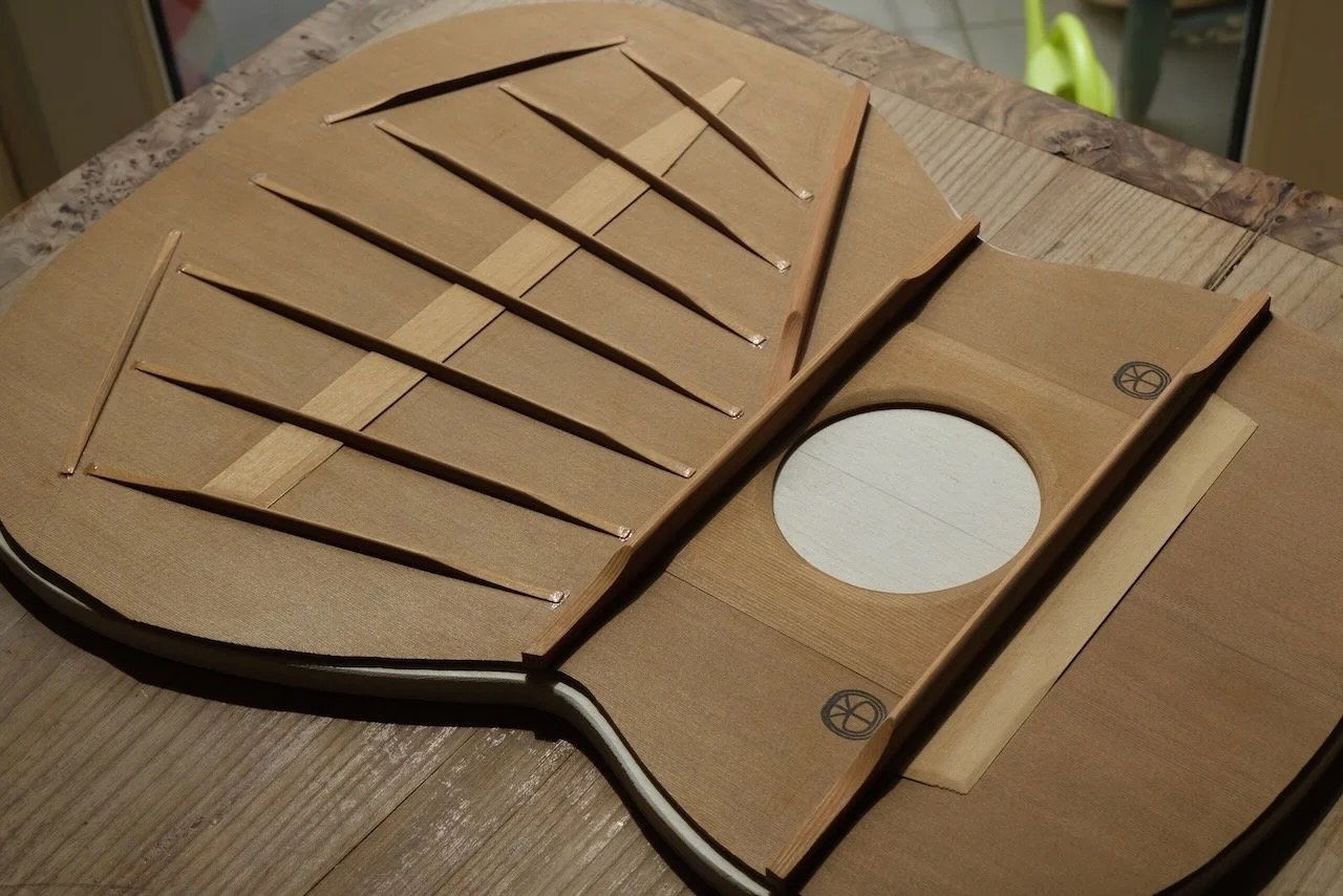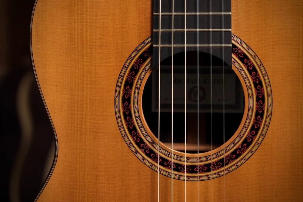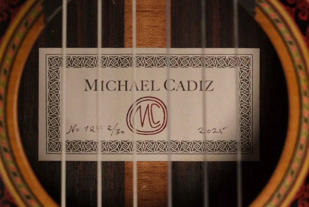Overview: Michael Cadiz' "Robert Ruck Tribute Model" is based on an outstanding 1979 Robert Ruck guitar which features Ruck's early bracing system of 6 fans and a treble bar. The instrument offered here will be one of 30 Tribute guitars Michael Cadiz will craft with wood parts from Robert Ruck's workshop.